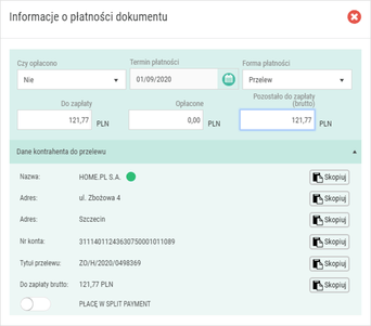 Szybko wyeksportujesz przelewy do banku lub podglądniesz dane do płatności tj. kontrahent, kwota, numer konta w banku